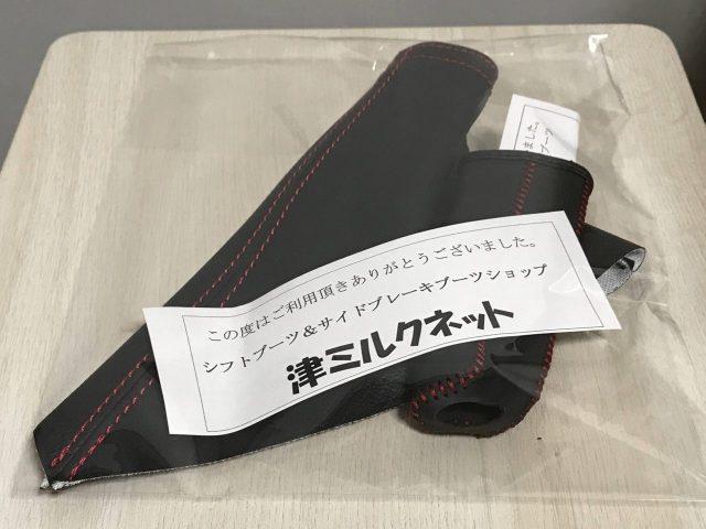 サイドブレーキカバーセット。本革のサイドブレーキカバーと合皮のサイドブレーキブーツのセットです。純正品は本革サイドブレーキカバーだけで1万円オーバー。そんなもの購入出来ません。というわけで定番の津ミルクネット製。それでもお金がなくて手が回らなかったんですよね。苦節1年1ヶ月。