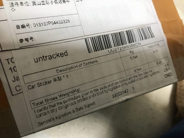 一か月と三週間かかって郵便が届きました。