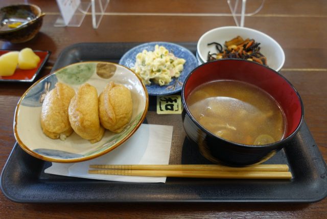 ランチメニューはけんちんうどん定食とおいなり定食の二種類。で、おいなり定食をお願いしてみました。