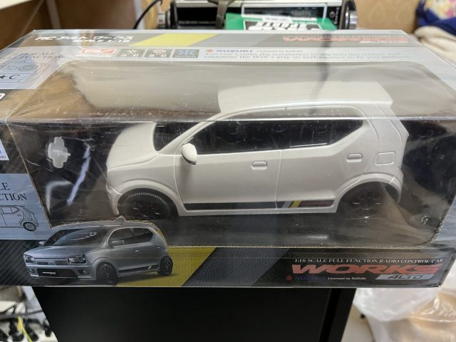 こんなものが届いていました。1/16アルトワークスラジコン。実は以前、「こんなもの買ってもなぁ」と買わなかったのですが、絶版になってから私が実車を購入することになるという。で、「ああ、あのときたくさん売っていたのに買っておけばよかった」と後悔先に立たず。というわけでメルカリで良いもので出て来たのでポチってしまいました。まぁ単なる邪魔な飾りになるか保管になるかなのですが・・・。